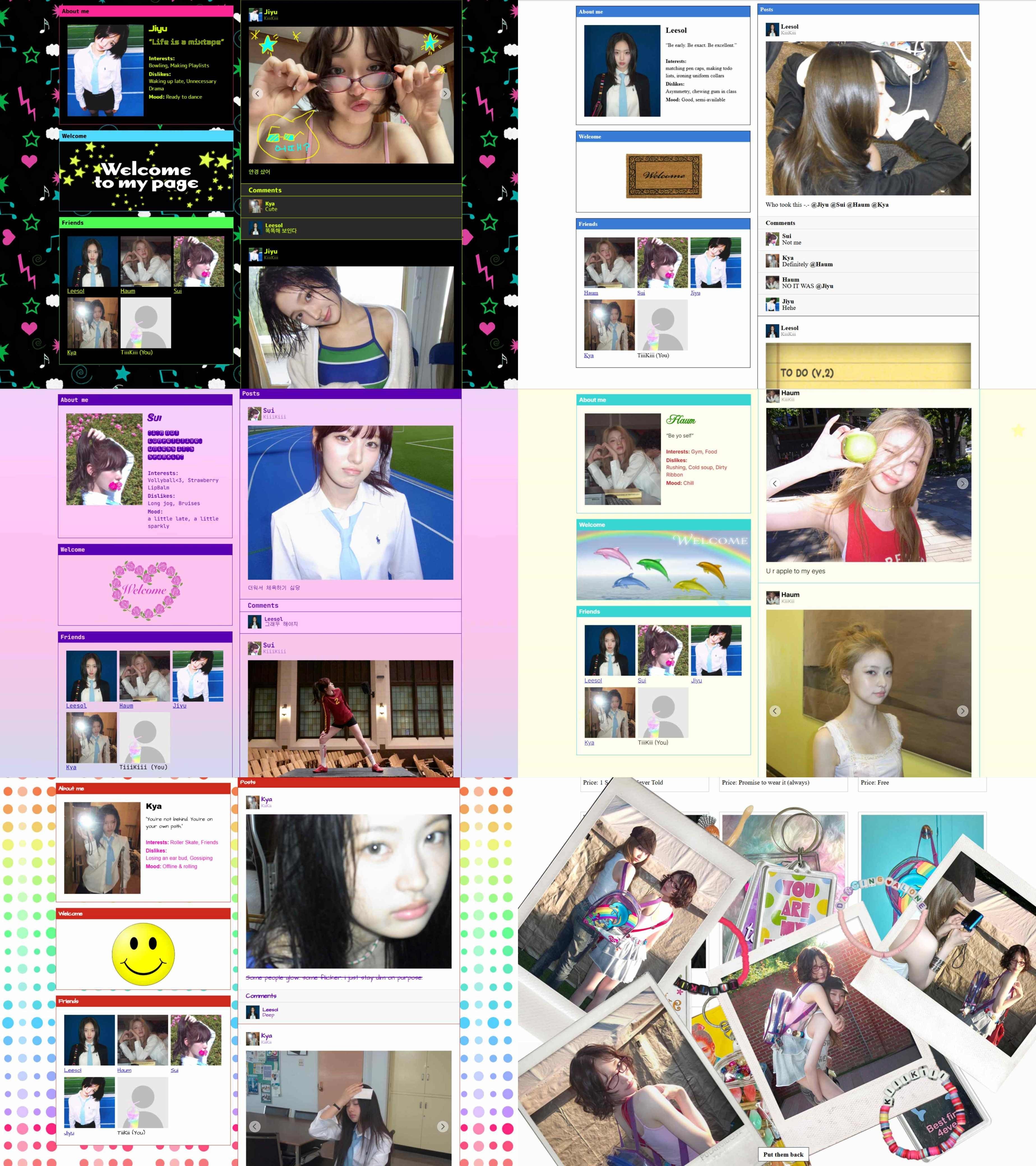Each member is styled as a "seller", with profile pages capturing their distinct personalities. Designed to resemble 2000s-style personal blogs, the profiles include candid photos, videos, and even mock comments from fellow members.