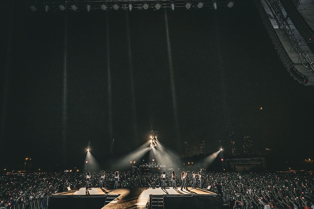 TWICE kicked off their set with their English-language hit The Feels, followed by fan favorites like MORE & MORE and What is Love?. Accompanied by a live band, the group delivered an energetic, polished performance that wowed the massive audience.