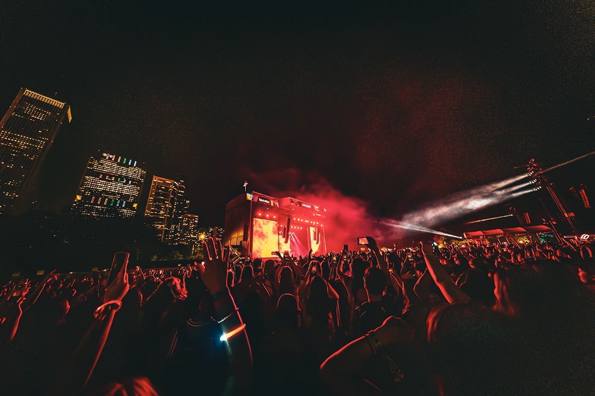 Grant Park was filled with fans waving Candybong lightsticks, creating a sea of glowing support. The crowd erupted as TWICE appeared on stage.