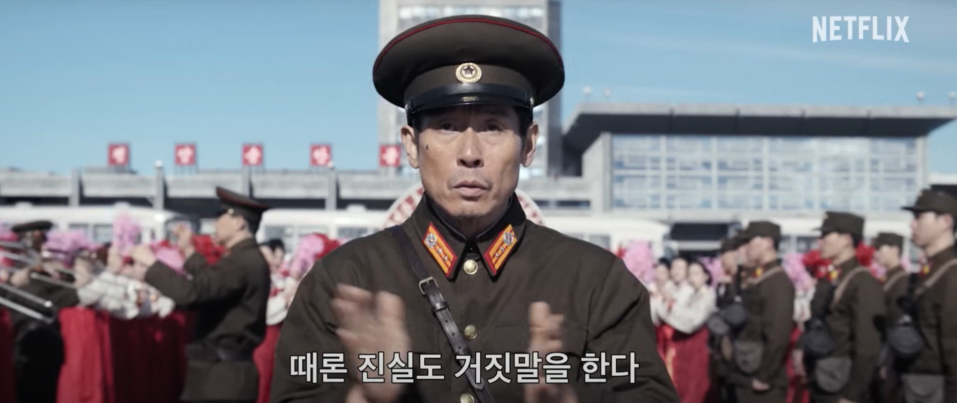 The trailer intensifies the suspense, with Sol’s deep voice narrating a secret operation to safely land a hijacked passenger plane in South Korea. Scenes alternate between Gimpo Airport and Pyongyang Airport, emphasizing the urgency. Hong’s line, “Sometimes even the truth lies,” followed by Sol’s reply, “Even lies tell the truth,” adds layers of intrigue.