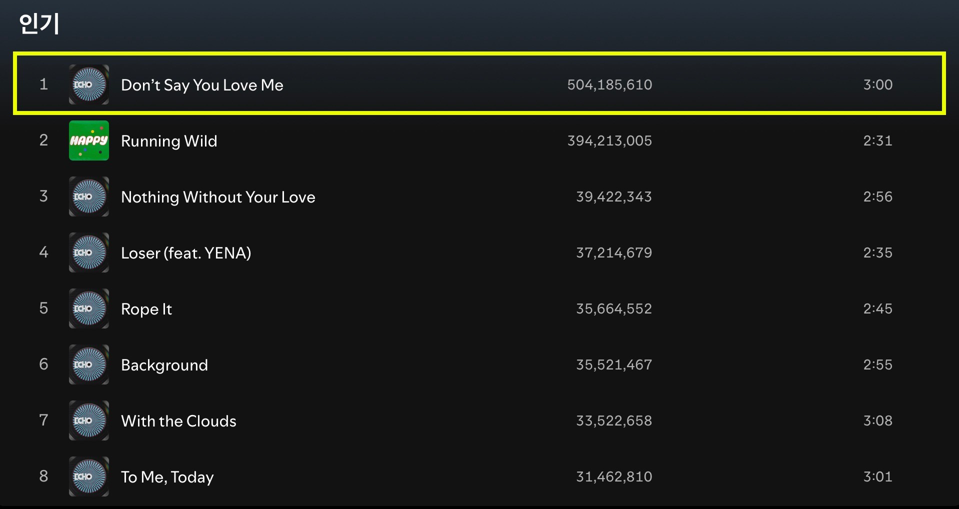 Jin released his second solo album "Echo" in May. According to Spotify, the title track "Don't Say You Love Me" surpassed 500 million streams as of September 26.