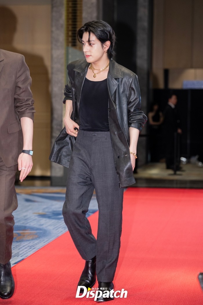 As he greeted the cameras, JAKE's signature smile and playful heart pose added a touch of sweetness to his polished appearance. The sparkle in his eyes matched the glow of the event, drawing admiration from fans and media alike.
