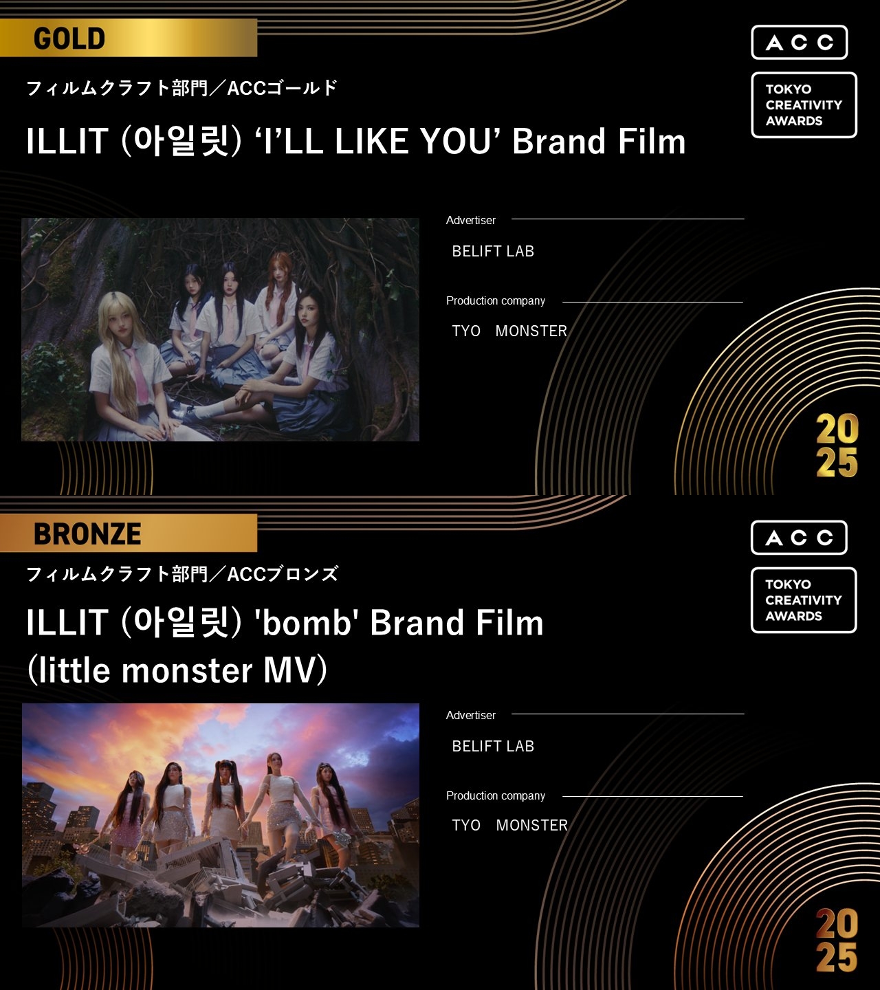 At the 65th ACC Tokyo Creativity Awards, the group's brand films for their second and third mini albums won Gold and Bronze in the Film Craft category. The winners were recently announced on the event's official website.