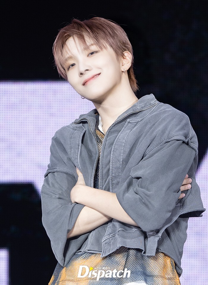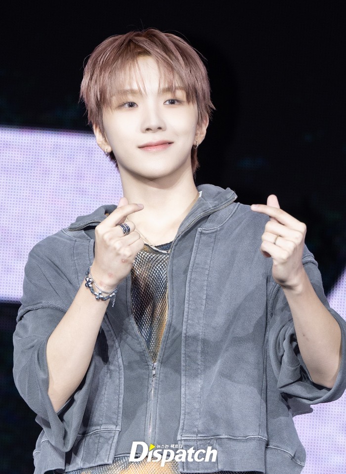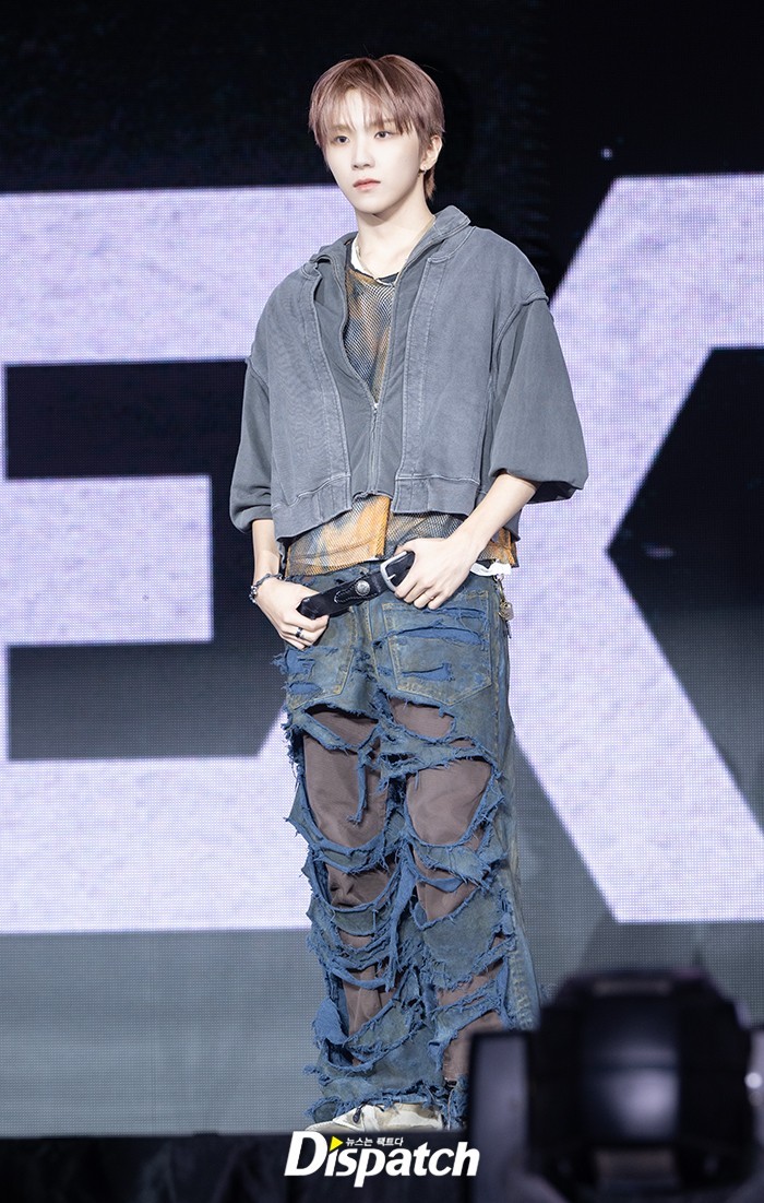 Woonhak of BOYNEXTDOOR caught every gaze at the showcase with his relaxed street style — a gray zip-up hoodie paired with ripped jeans. His effortless charm shone through each casual pose.