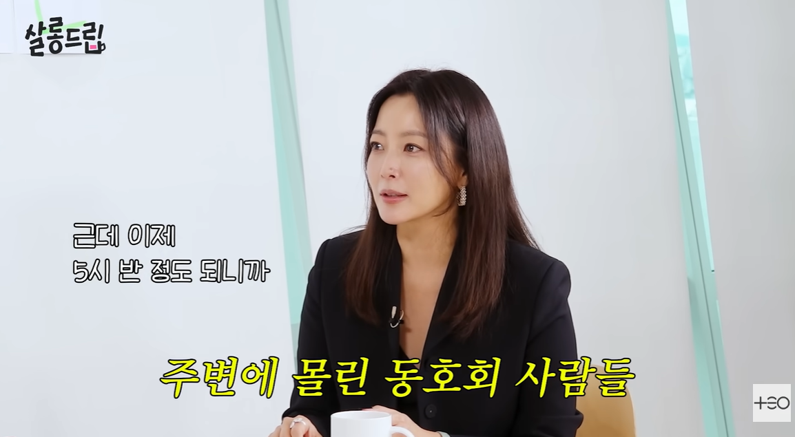 Known for her love of social gatherings, Kim also mentioned her group Ujuhui ("Rain Drink Club"). "It's a group that drinks whenever it rains," she joked. "When it pours, there's not a single sober person left."