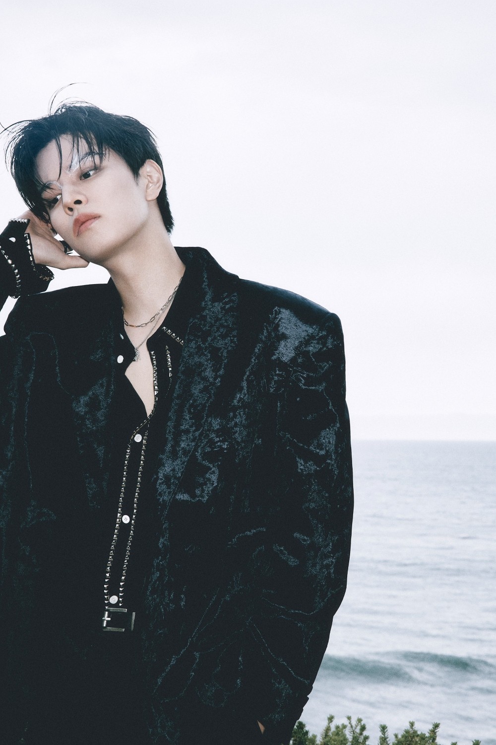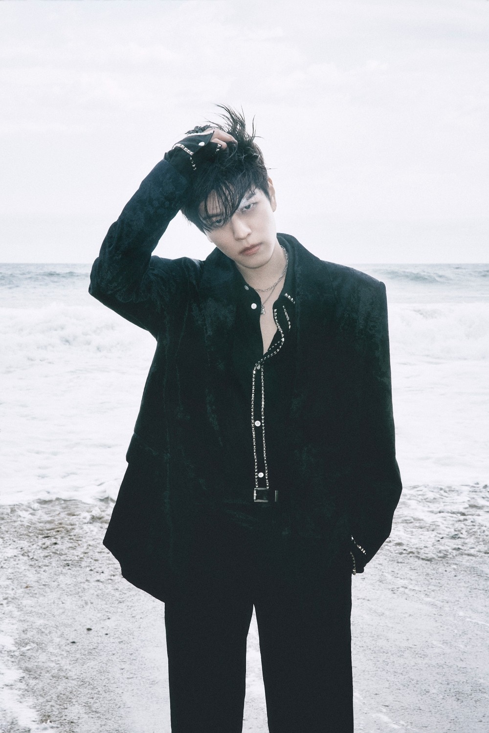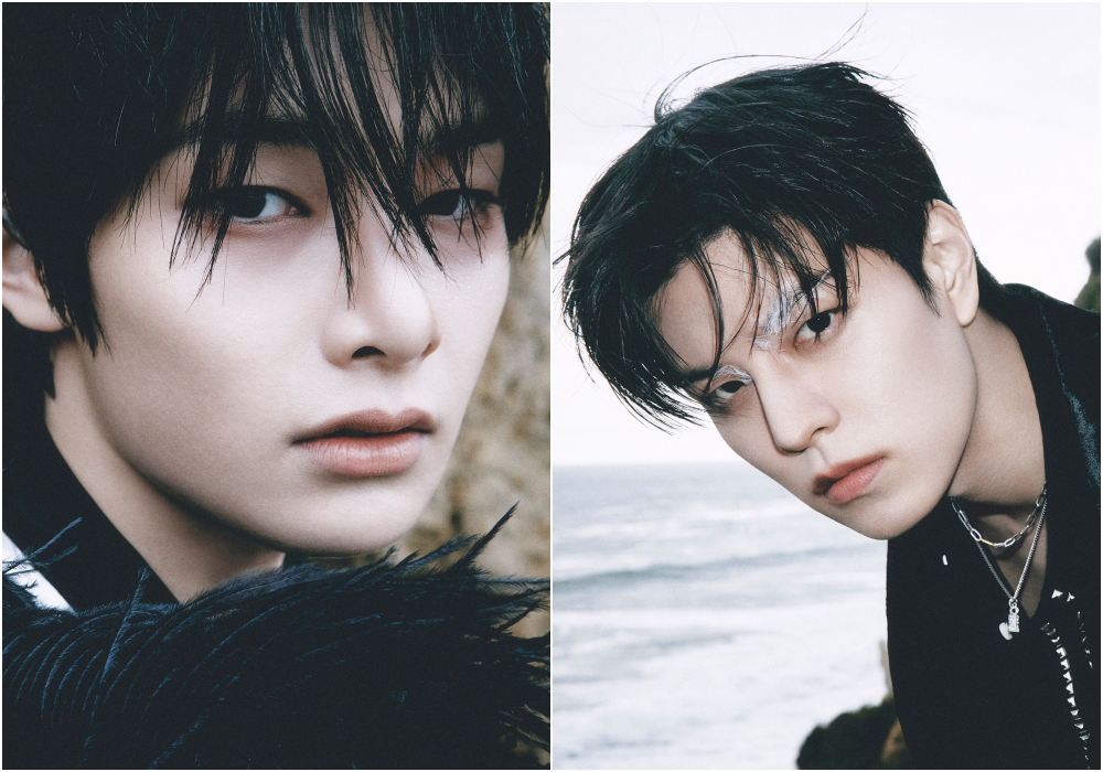 Dressed in sleek all-black outfits, the two members stood amid vast natural landscapes like the sea and sand, radiating poise and intensity through commanding expressions.