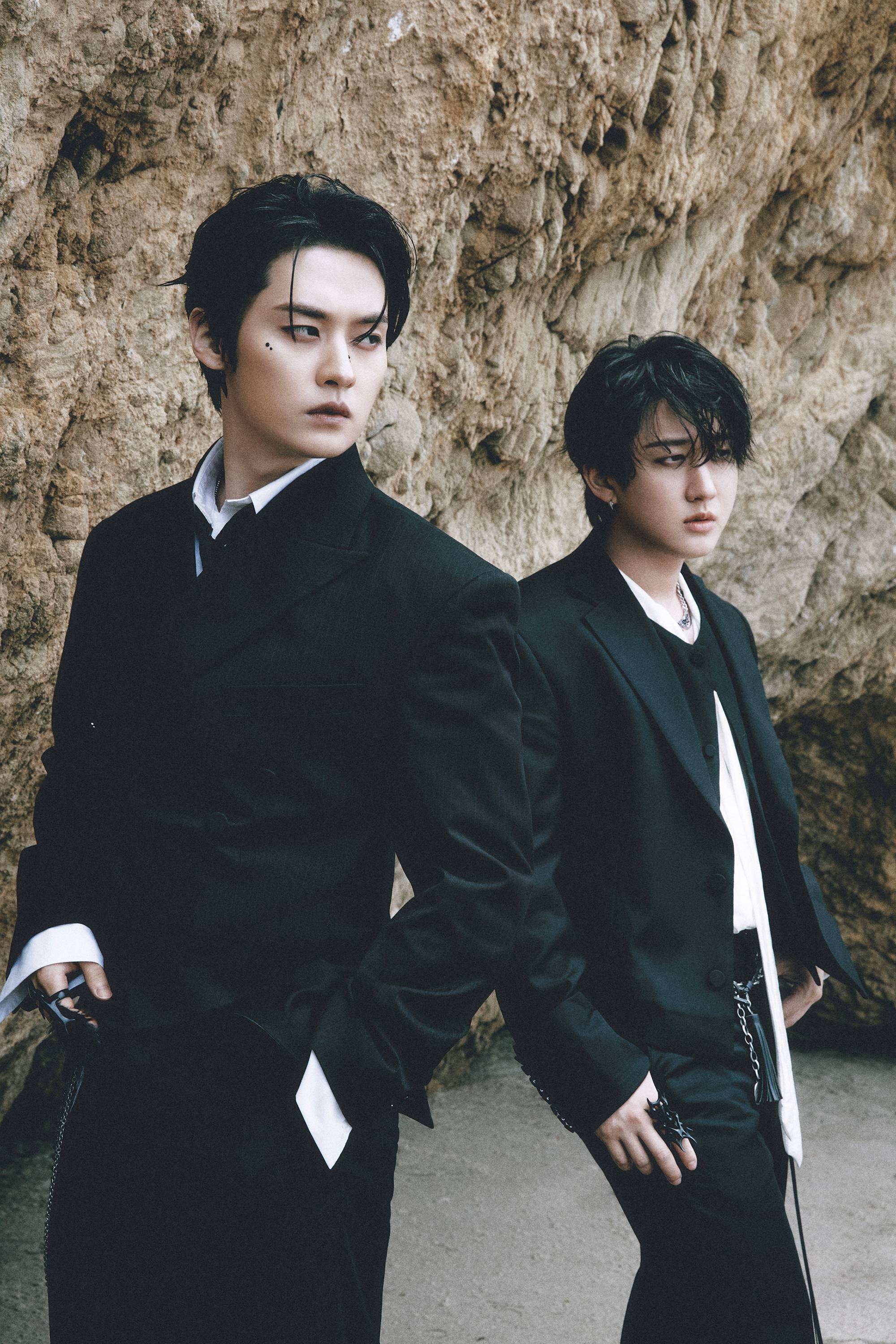 The members were divided into four units, each exuding sleek, confident energy. In the group photo, their silhouettes contrasted dramatically against massive stone formations, creating a striking and mysterious aesthetic.