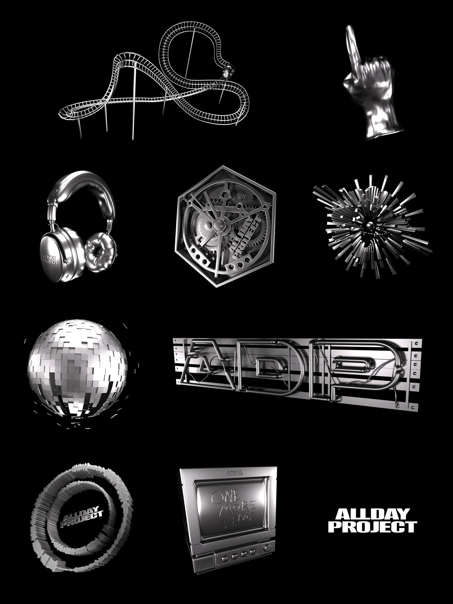 On November 5, The Black Label unveiled teaser content for AllDay Project's new digital single "ONE MORE TIME" through the group's official social media channels. The teaser image features symbolic objects linked to the new track — a roller coaster rail, headphones, an old monitor, a mirror ball, and a hand pointing upward.