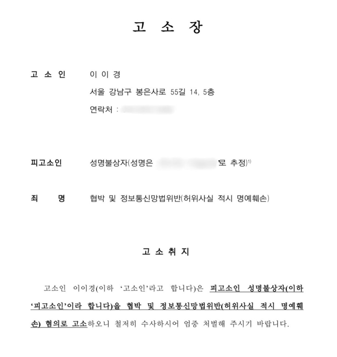 After appointing a lawyer, Lee Yi-kyung filed a complaint with the Gangnam Police Station, accusing A of intimidation and defamation by spreading false information via the Information and Communications Network Act.