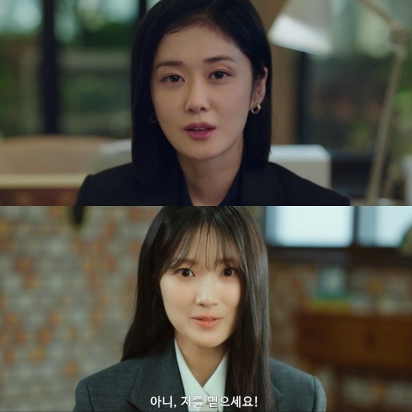 In the teaser, Jang Nara delivers a confident line—"Trust me"—asserting her commanding presence. Kim Hye-yoon fires back with, "No, trust me!" teasing the bold energy and ambition of a newcomer ready to challenge the status quo.
