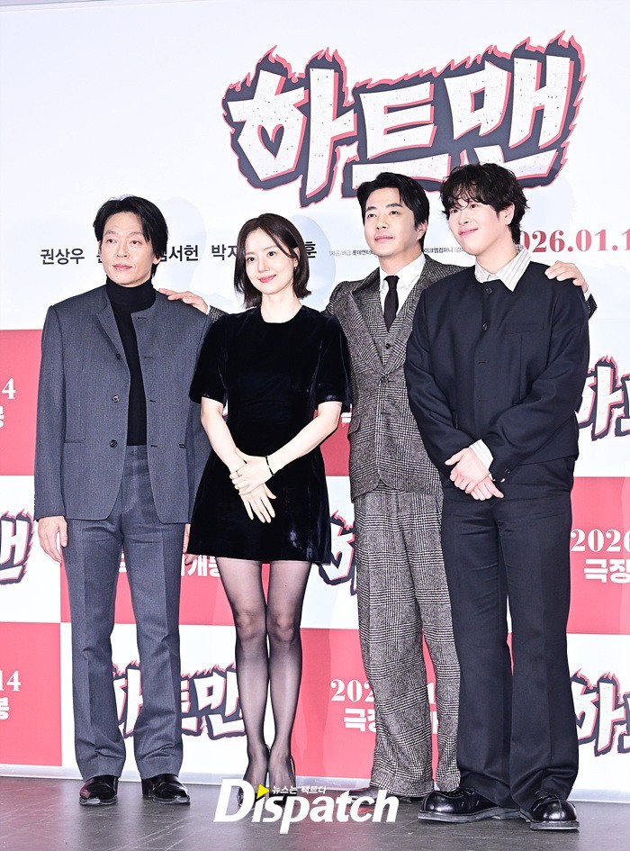 The press screening and media conference for Heart Man took place on January 8 at Lotte Cinema World Tower, with Kwon Sang-woo, Moon Chae-won, Park Ji-hwan, Pyo Ji-hoon, and director Choi Won-seok in attendance.