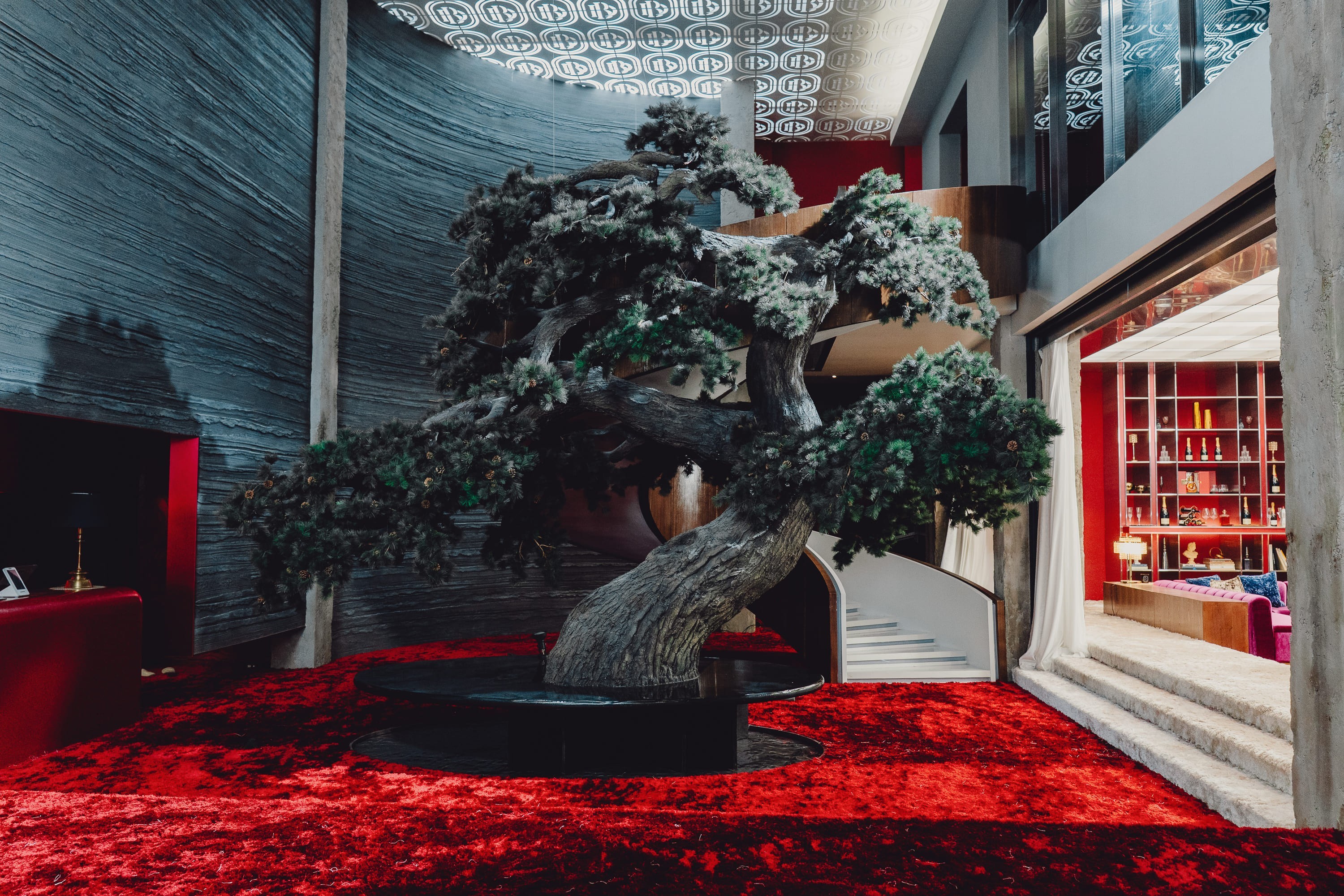 The fictional high-end brand "Budoir," targeting the top 0.1%, stands at the center of the drama's aesthetic. From the grand pine tree installed in the middle of the boutique to the sleek displays of signature Budoir bags, the set design amplifies themes of wealth, beauty, and vanity.