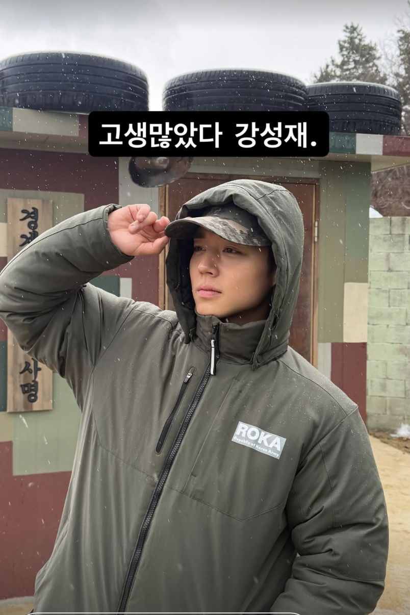 On the same day, Park Ji-hoon shared a message on social media saying, "Great work, Kang Sung-jae." He also posted a photo of himself in military fatigues standing in front of a barracks to commemorate the final day of filming.