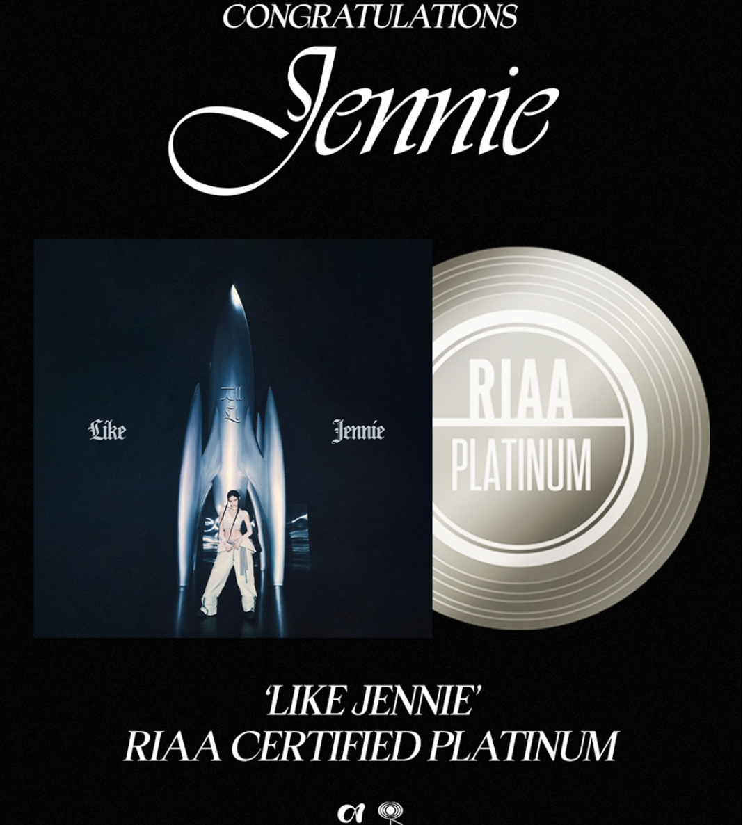 Jennie earned a Platinum certification for "like JENNIE," the title track from her first full-length solo album Ruby. The achievement comes seven months after the track was first certified Gold.