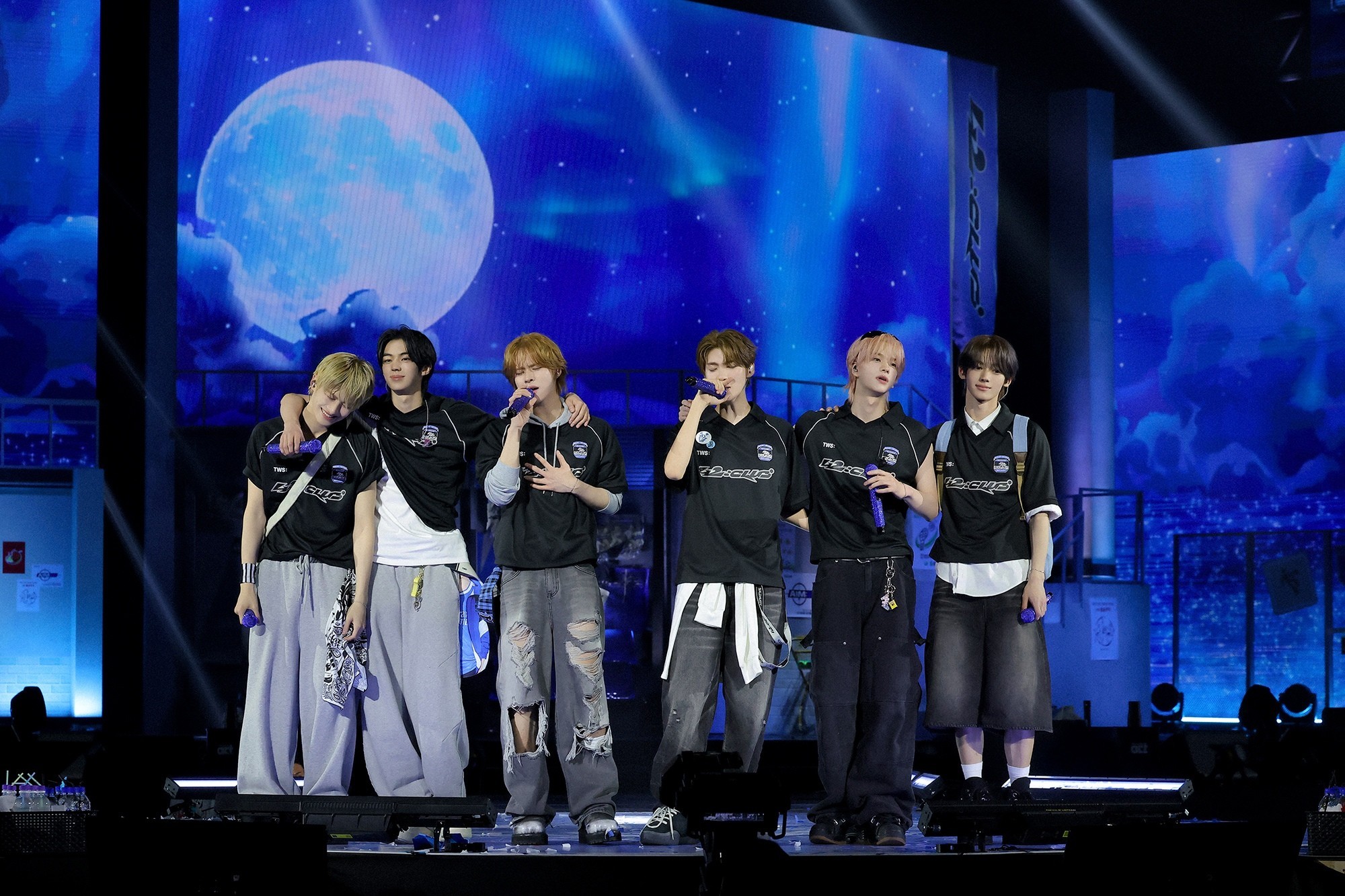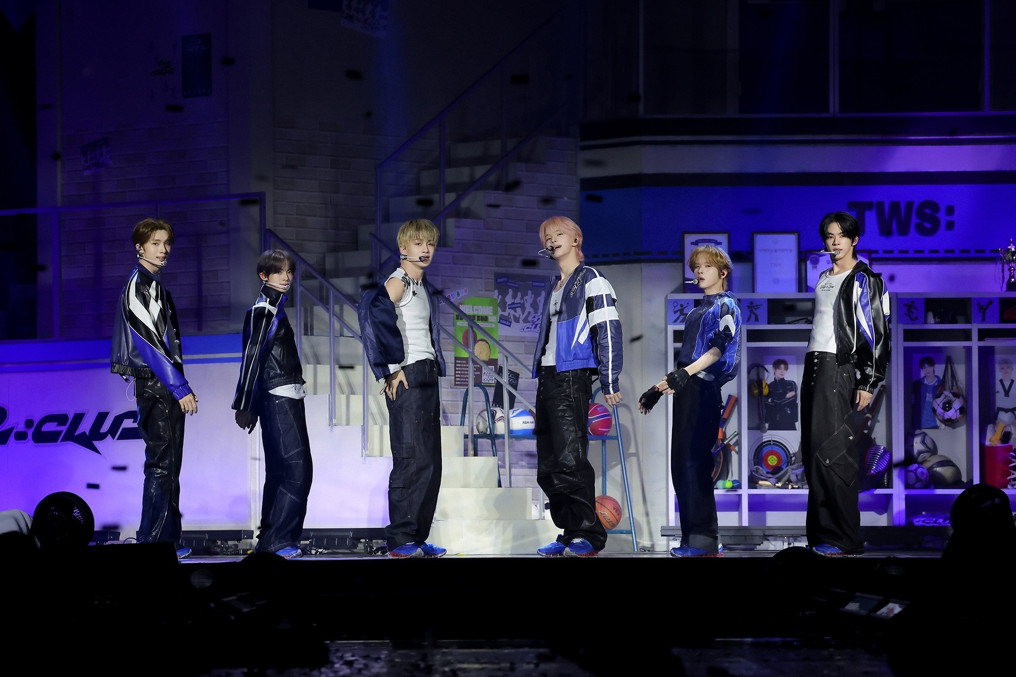 TWS opened with "Hot Blue Shoes," followed by a powerful performance of "Freestyle." They also showcased diverse charms through a cover medley including "Aing♡" and "Cheer Up."