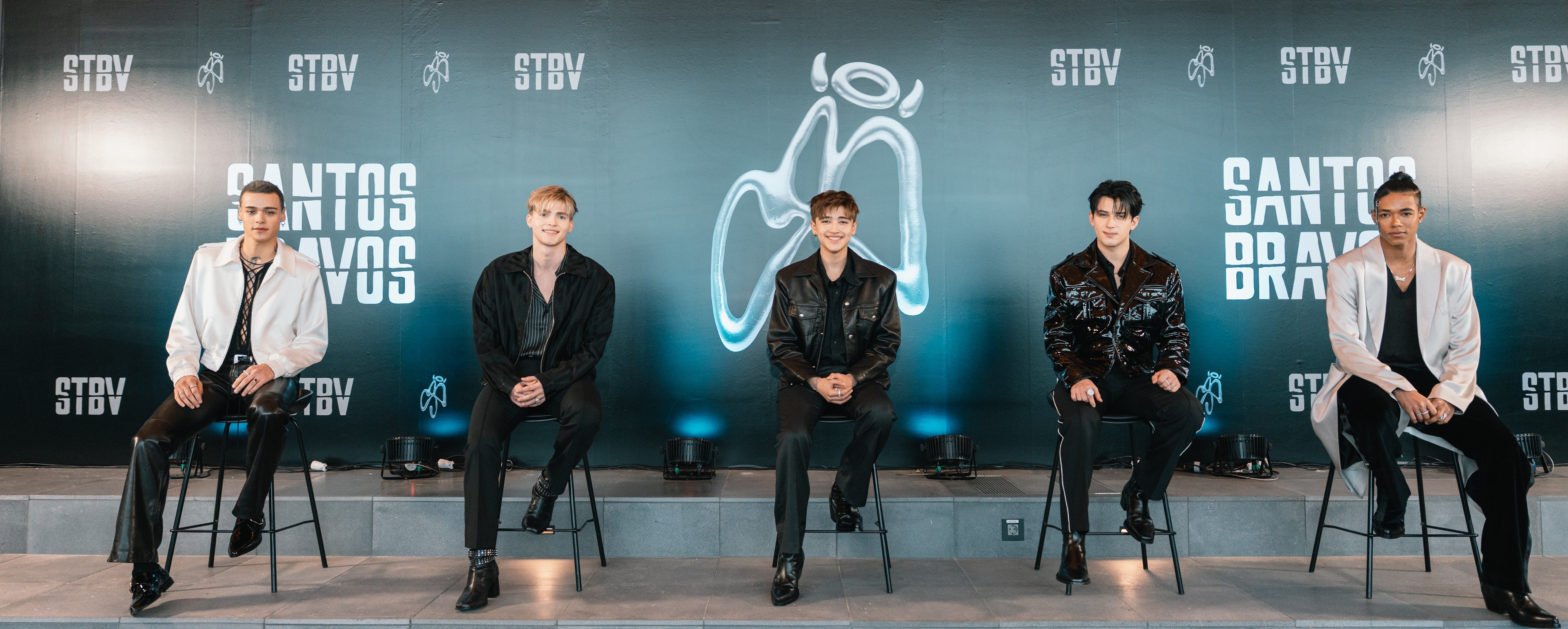 SANTOS BRAVOS consists of Drew (USA/Mexico), Alejandro (Peru), Kauê (Brazil), Gabi (Puerto Rico), and Kenneth (Mexico). Their diverse nationalities and cultural backgrounds form the group's core strength.
