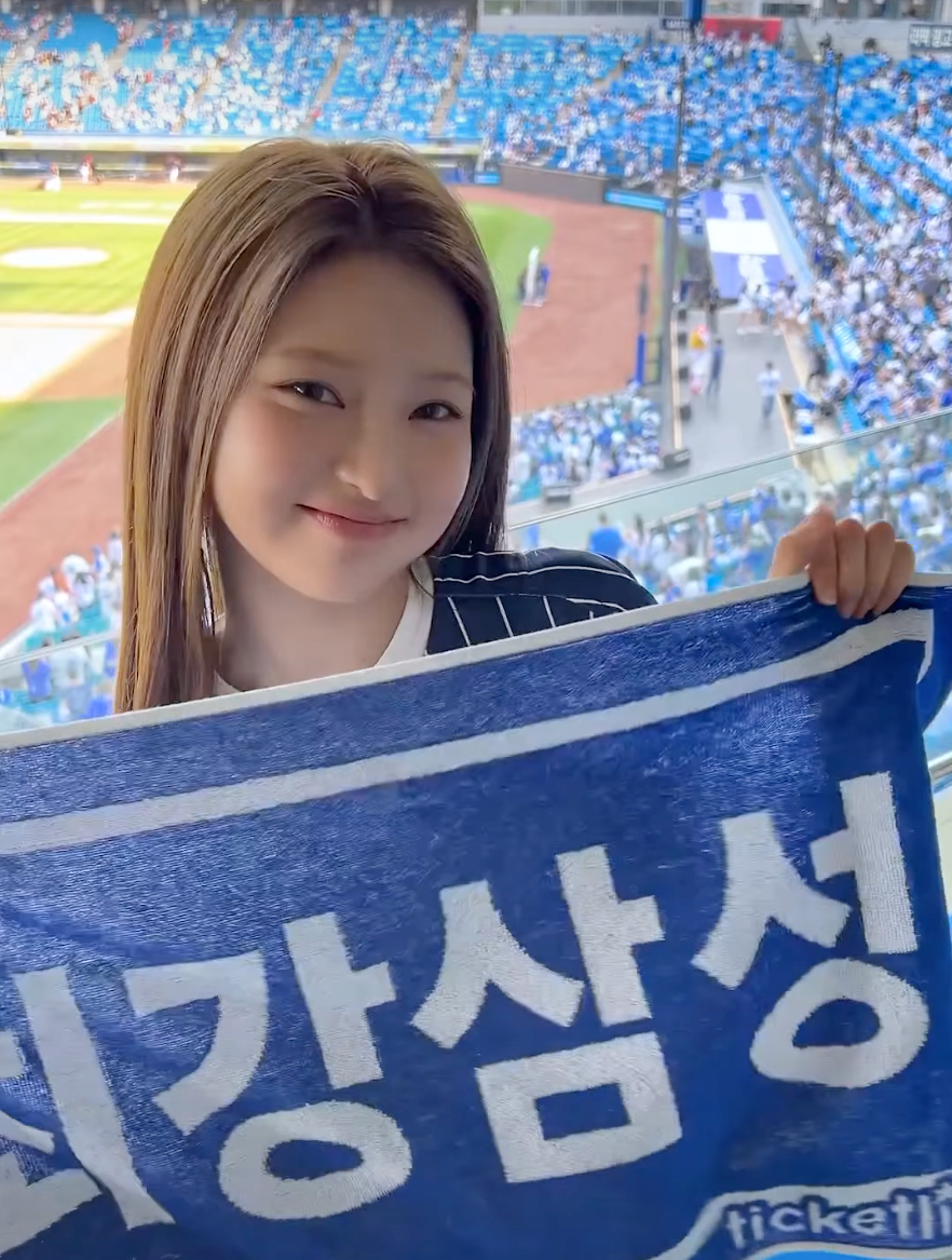 Last year, she drew attention with a clean first pitch. She also appeared on the cheering stage, performing cheerleading to the lineup song and interacting with the crowd with chants set to "I Do Me."