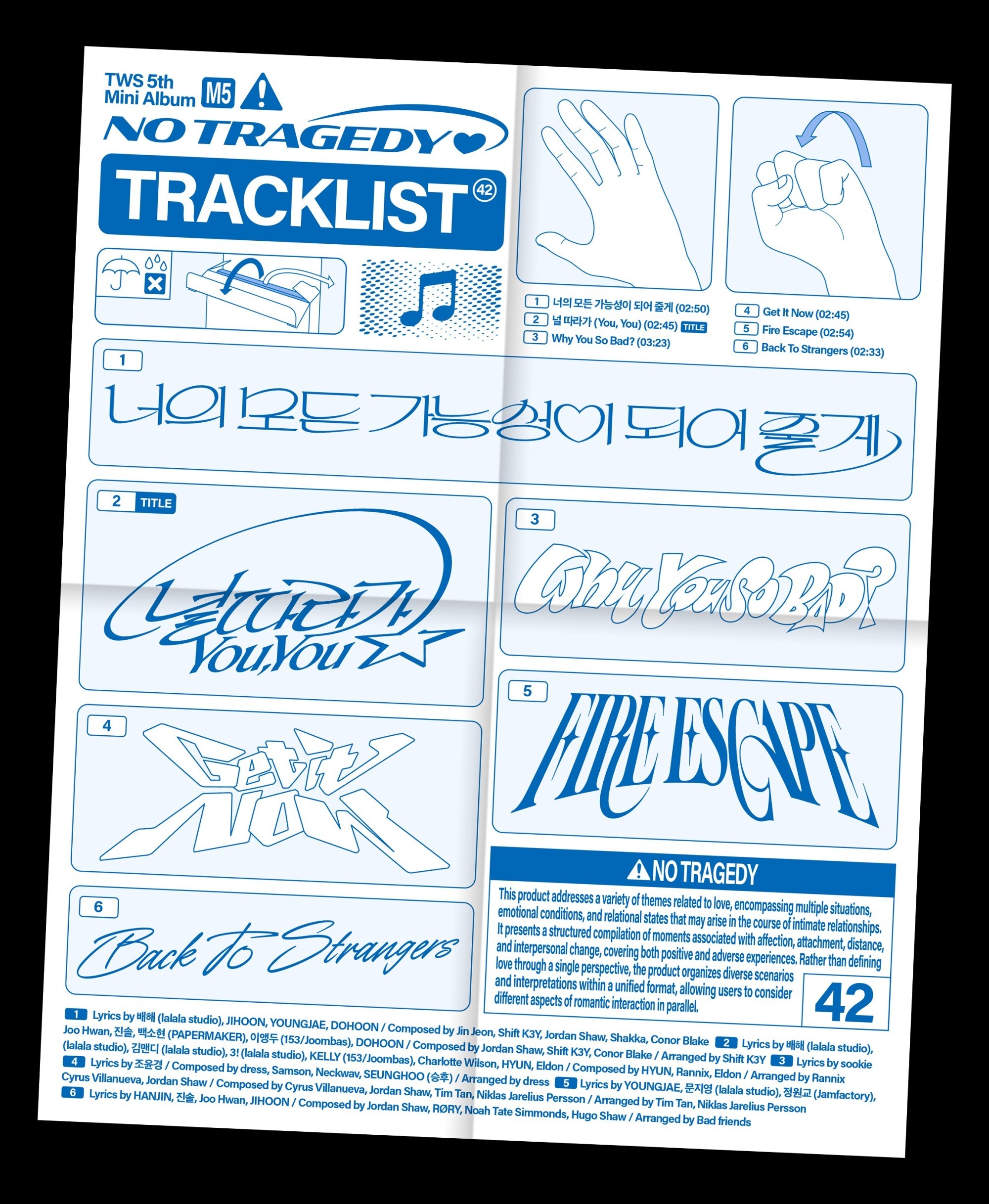 Youngjae, Hanjin, and Jihoon are also credited in writing lyrics for the album's B-sides, expressing TWS's signature direct and self-driven approach to love.